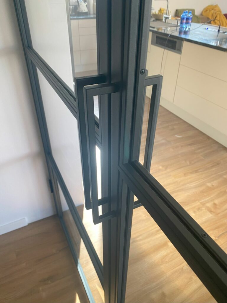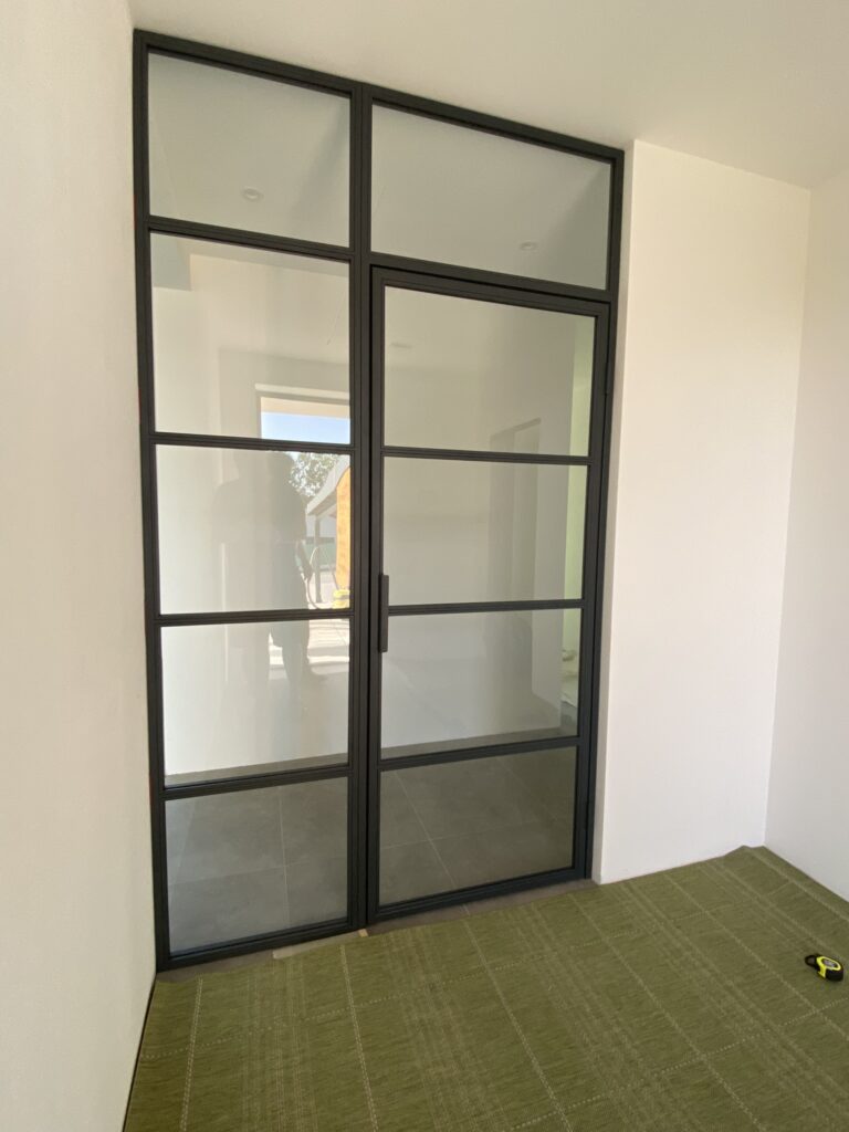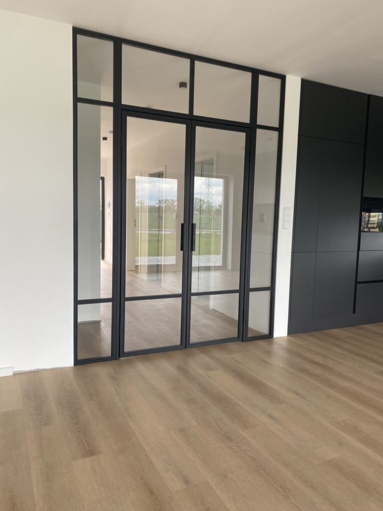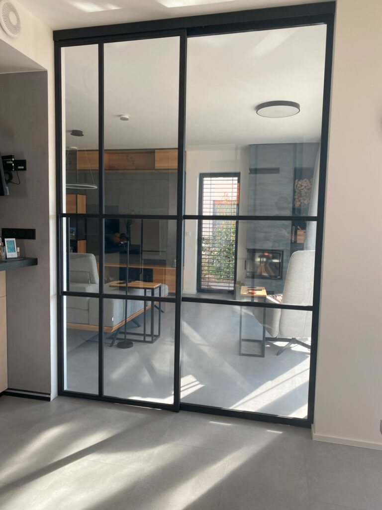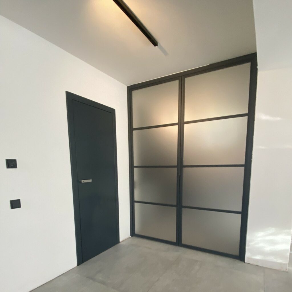 Industriální dveře představují moderní trend v interiérovém designu, který dodává prostorům jedinečný charakter a prvky industriálního stylu. Jsou zpravidla vyrobeny z černých ocelových rámů a skleněných tabulí z bezpečnostního vrstveného nebo kaleného skla. Tyto minimalistické materiály zajišťují nejen stylový vzhled, ale také vysokou úroveň bezpečnosti při používání. Standardní aretace dveří v zavřené poloze je zajištěna magnety, avšak na přání lze vyrobit varianty s aretací pomocí kliky, zámku nebo zástrče.